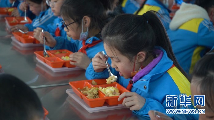22日,尚欣怡和同學(xué)們?cè)谑程贸晕顼?。新華社記者 王紫軒 攝