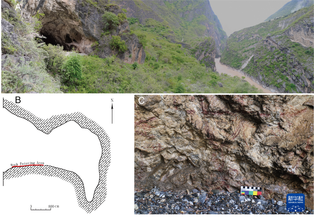 年代測定表明,位于云南省麗江市金沙江虎跳峽的萬人洞巖畫可追溯至晚更新世末至全新世早期,是目前有年代數(shù)據(jù)記錄的東亞大陸最古老的彩繪巖畫,由該地區(qū)舊石器時代的狩獵—采集人群創(chuàng)作。相關(guān)研究成果于近期發(fā)表在國際考古學(xué)期刊《考古科學(xué)雜志》。