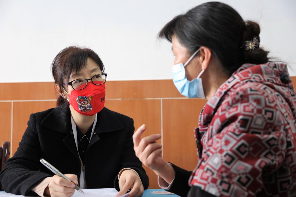3月9日,評估機構(gòu)工作人員袁國芬(左)在社區(qū)“石榴籽家園”開展老年人能力綜合評估工作。新華社記者 趙玉和 攝