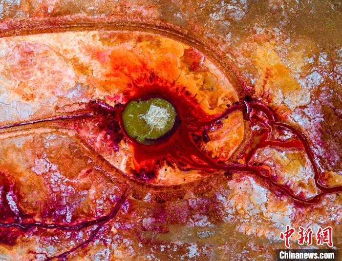 圖為無人機(jī)航拍“惡魔之眼”艾肯泉。莫啟明 攝
