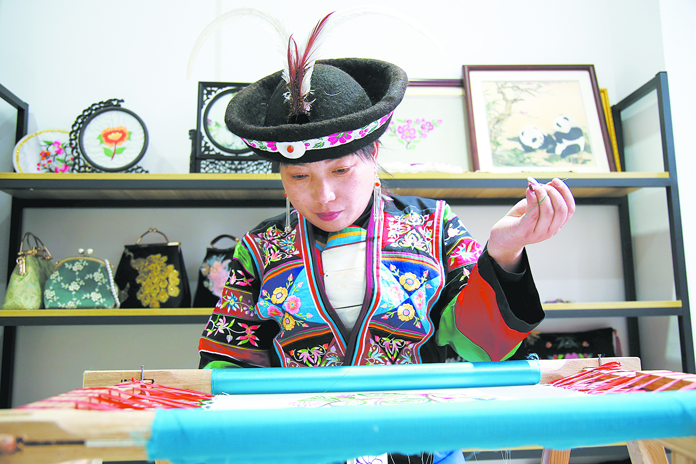 通過市場調查,最終她得出的結論是:白馬藏繡不僅有市場,而且這個市場需求量還會很大。班潤美知道,白馬藏繡是時候走出大山了?;氐讲莸剜l(xiāng),她四處奔走,將自己的調查結果原原本本告訴給了家鄉(xiāng)婦女,讓她們有信心跟著自己創(chuàng)業(yè)。她說:“在家創(chuàng)業(yè)最大的好處就是,既可以方便照顧老人孩子,又可以增加家庭收入。時間不固定,想什么時候繡就什么時候繡,想繡多少就繡多少。”很快,她的第一批白馬藏繡就進入了市場,在得到市場肯定的同時,也讓當?shù)貗D女看到了文化轉化出來的經(jīng)濟價值。