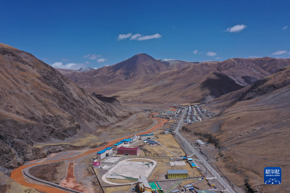 這是4月22日在青海省玉樹藏族自治州曲麻萊縣拍攝的巴干鄉(xiāng)寄宿制小學(xué)(無人機(jī)照片)。新華社記者 張龍 攝