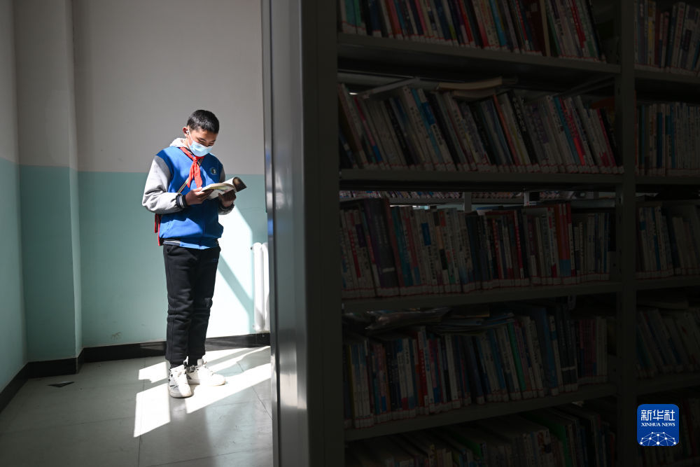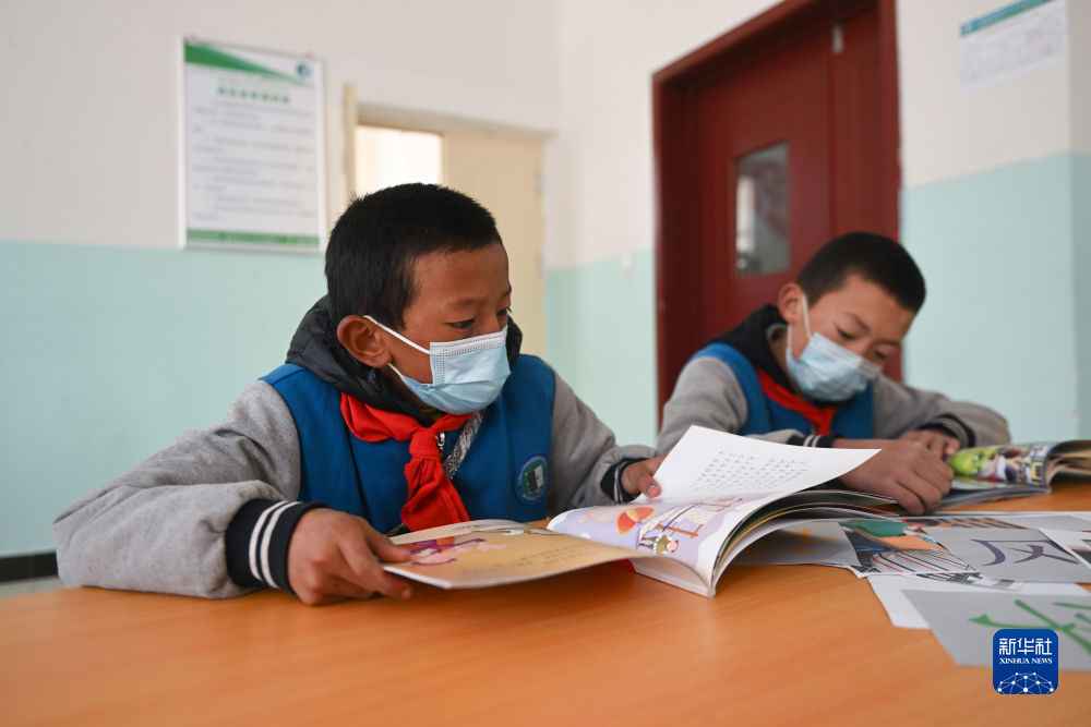 4月22日,青海省玉樹藏族自治州曲麻萊縣巴干鄉(xiāng)寄宿制小學(xué)的學(xué)生在圖書室內(nèi)閱讀。新華社記者 張龍 攝
