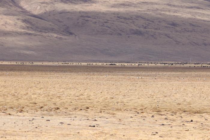 4月開始,隆寶國家級自然保護區(qū)匯集了上游冰川融水和淺層地表水,具有開闊處似湖泊、蜿蜒處似河流、外圍區(qū)似沼澤的多元濕地斑塊,湖心裸露灘地、湖岸草洲密集,春夏季水位上漲形成“草洲微露,一片海子”的水禽宜居地,為斑頭雁、黑頸鶴及早期繁殖的雁鴨類提供營巢避敵、繁殖棲息的良好場所和充足的覓食空間。此次調(diào)查共記錄斑頭雁6000余只,黑頸鶴153種,其中有3對已開始孵化。