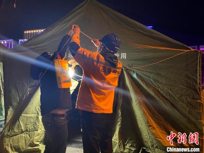 救援人員正在搭建帳篷。四川森林消防供圖