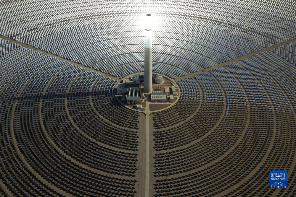 這是6月8日在海西蒙古族藏族自治州德令哈市光伏(光熱)產(chǎn)業(yè)園拍攝的青海中控德令哈50兆瓦光熱電站(無人機(jī)照片)。新華社記者 范培珅 攝