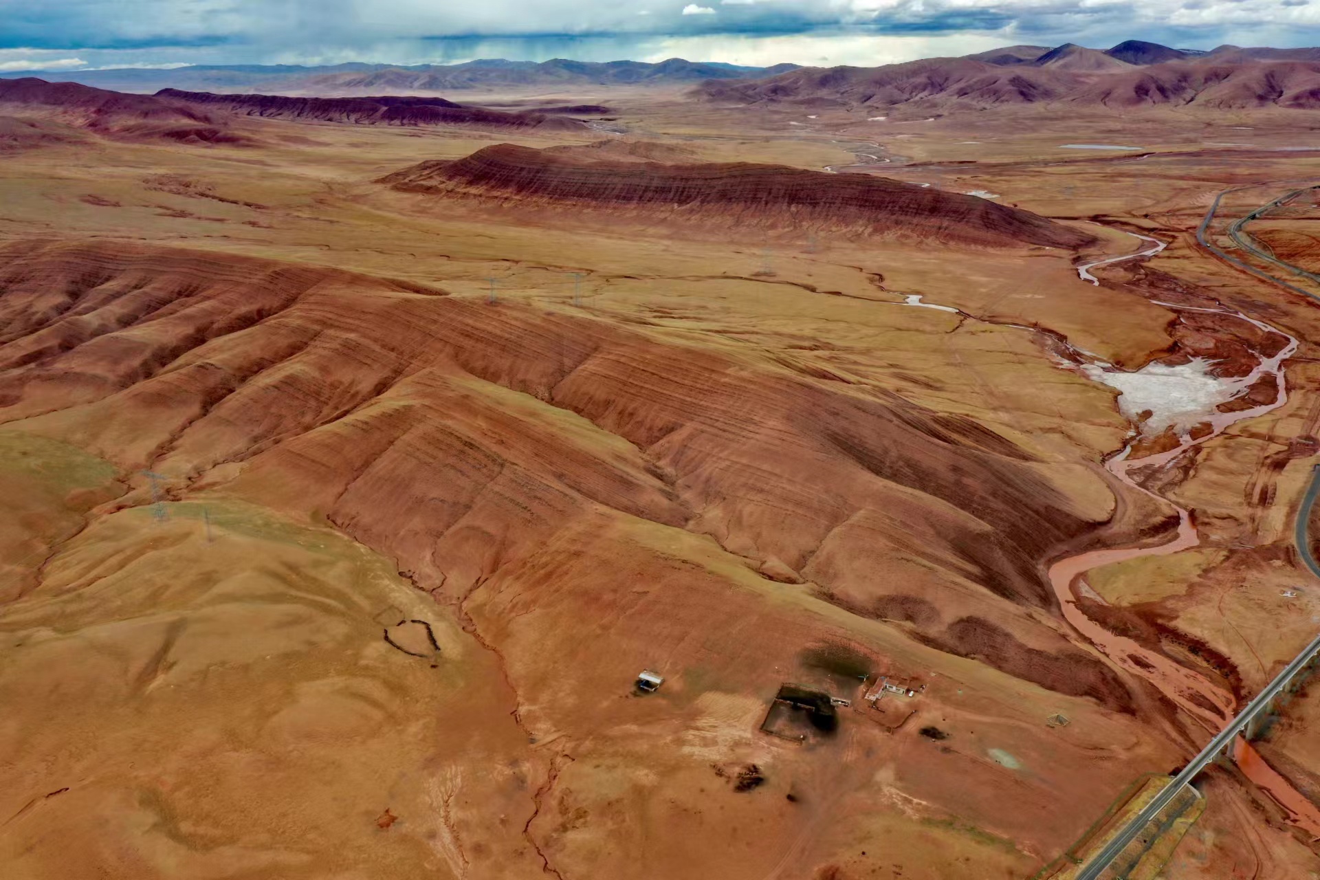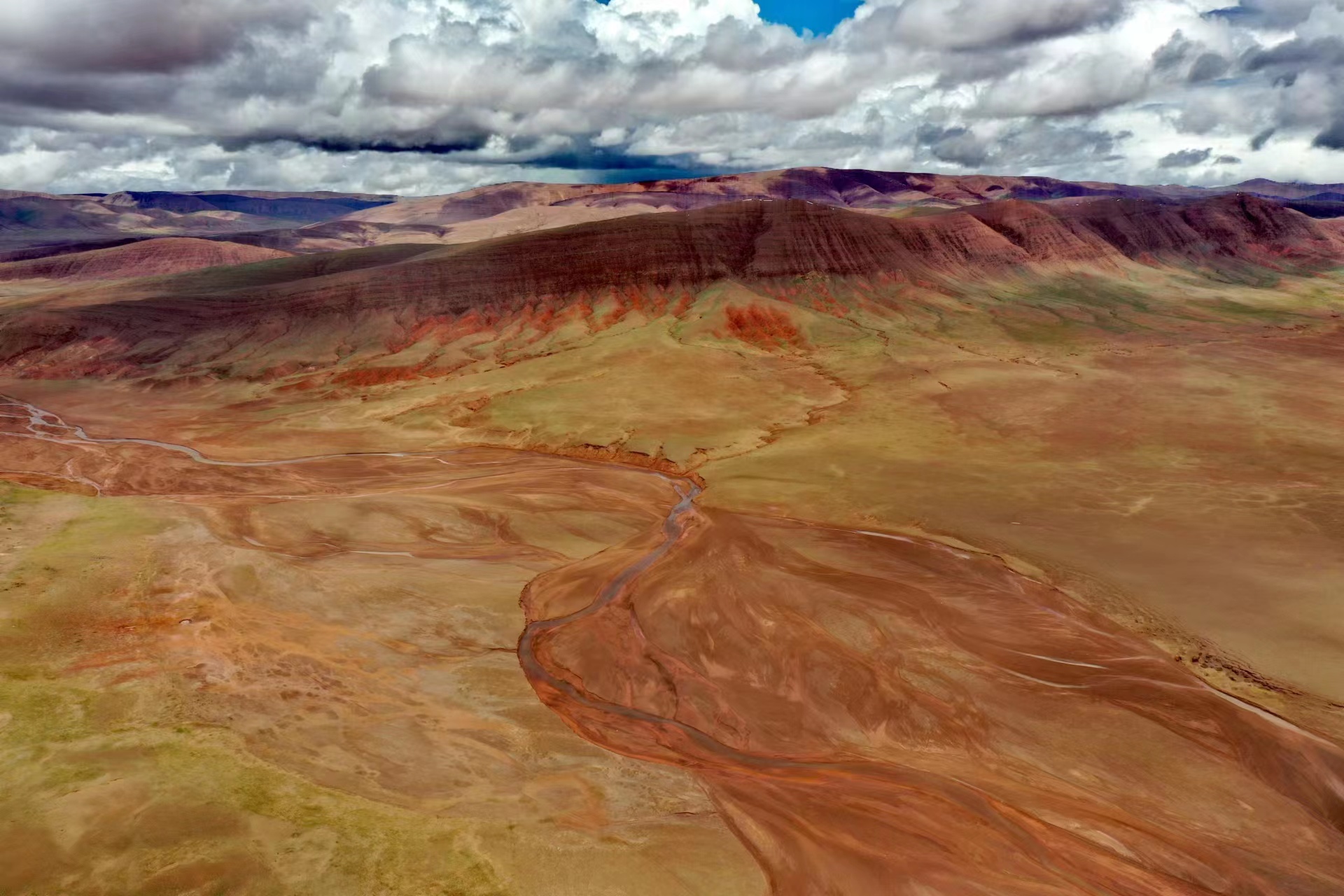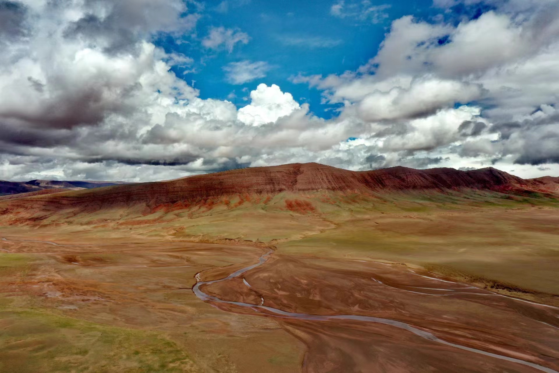 近日,中國(guó)地質(zhì)大學(xué)(武漢)長(zhǎng)江科考先遣隊(duì)員張永一行進(jìn)行綜合科學(xué)考察時(shí),在青藏公路日阿尺曲一帶發(fā)現(xiàn)一條紅色山脈,是青藏高原109國(guó)道沿線(xiàn)一處壯觀的地質(zhì)遺跡。該山脈由晚白堊紀(jì)鈣質(zhì)膠結(jié)的粉、細(xì)砂巖與古近紀(jì)紫紅色、磚紅色復(fù)成份礫巖所組成,呈近東西走向,兩坡不對(duì)稱(chēng),南陡北緩,地層剖面出露清楚。