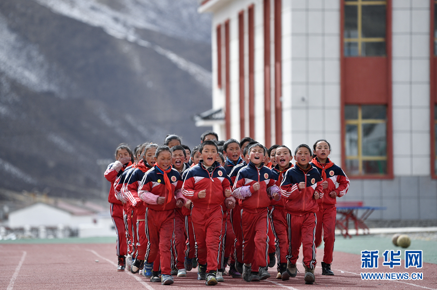 在果洛藏族自治州甘德縣下貢麻鄉(xiāng)寄宿制中心小學,學生在上體育課。(資料圖)新華社記者 張龍 攝