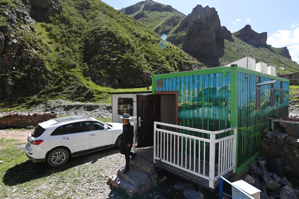 盛夏,昂賽大峽谷流水潺潺、綠草如茵;四周山勢(shì)奇絕,常有雪豹、白唇鹿、巖羊等野生動(dòng)物出沒(méi)。在特許經(jīng)營(yíng)接待集裝箱內(nèi),桑周忙著打掃衛(wèi)生,清洗床鋪,準(zhǔn)備迎接從各地到來(lái)的自然體驗(yàn)者。