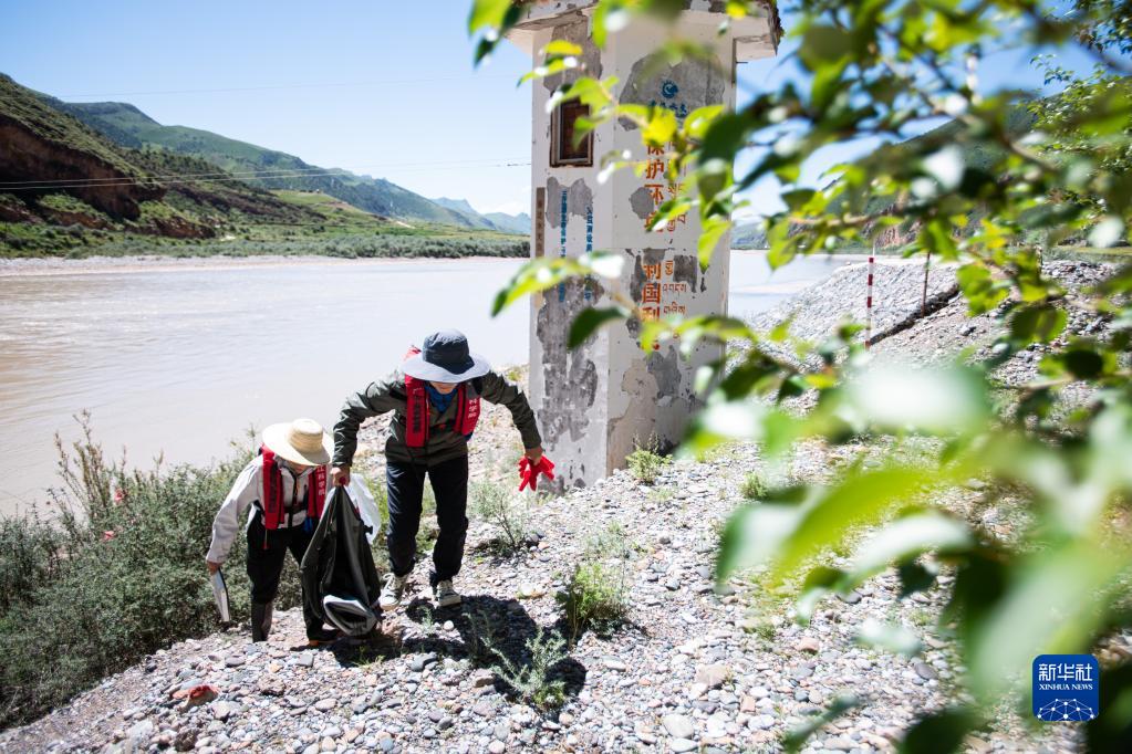 7月24日,長(zhǎng)江科學(xué)院科考隊(duì)員李魯?shù)ぃㄓ遥┡c劉晗在瀾滄江源區(qū)的扎曲采集底棲動(dòng)物樣本。新華社記者 肖藝九 攝