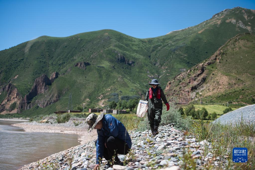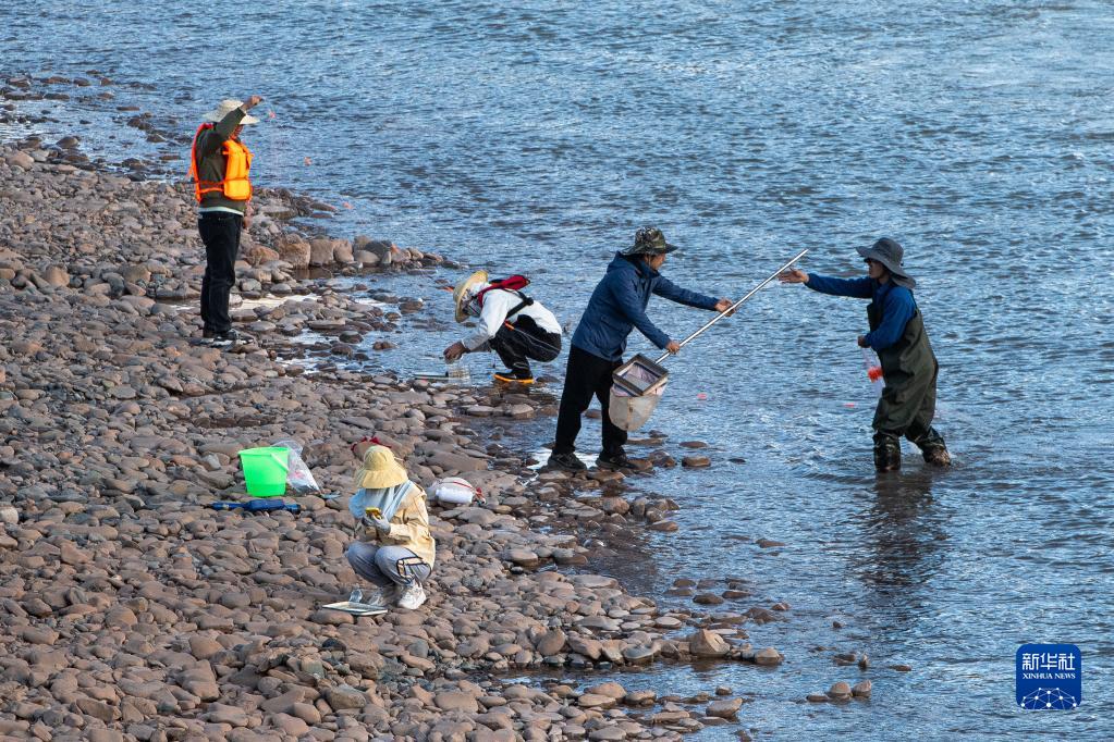 7月24日,長(zhǎng)江科學(xué)院科考隊(duì)員在瀾滄江源區(qū)的雜多進(jìn)行水生生物樣本采集。新華社記者 肖藝九 攝
