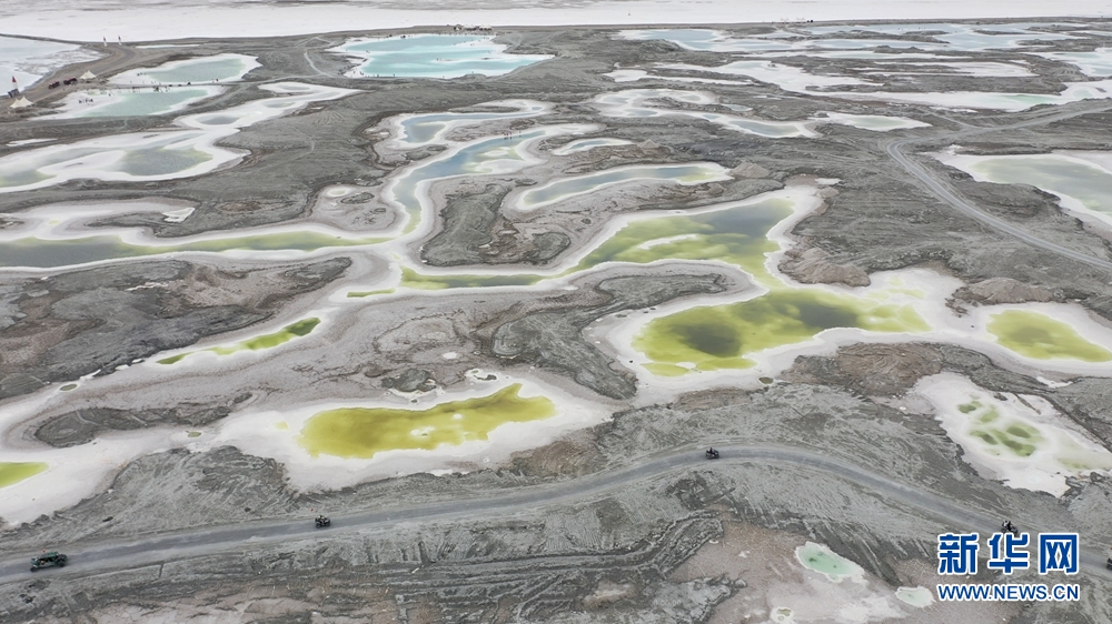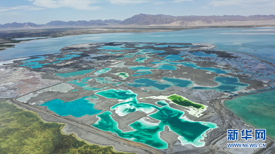 8月15日,航拍地處青海省海西州茫崖市的翡翠湖。翡翠湖是一個人工鹽湖,田字狀的湖水呈現(xiàn)出青翠的色彩。[詳細] -
