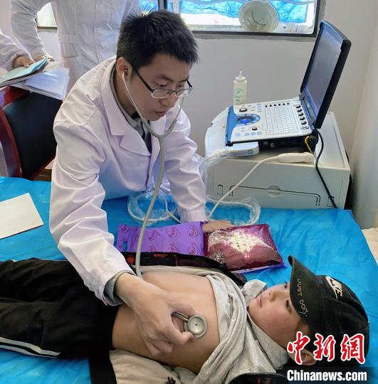 圖為邱筱煒正在為患者診治。上海市援青干部聯(lián)絡(luò)組供圖