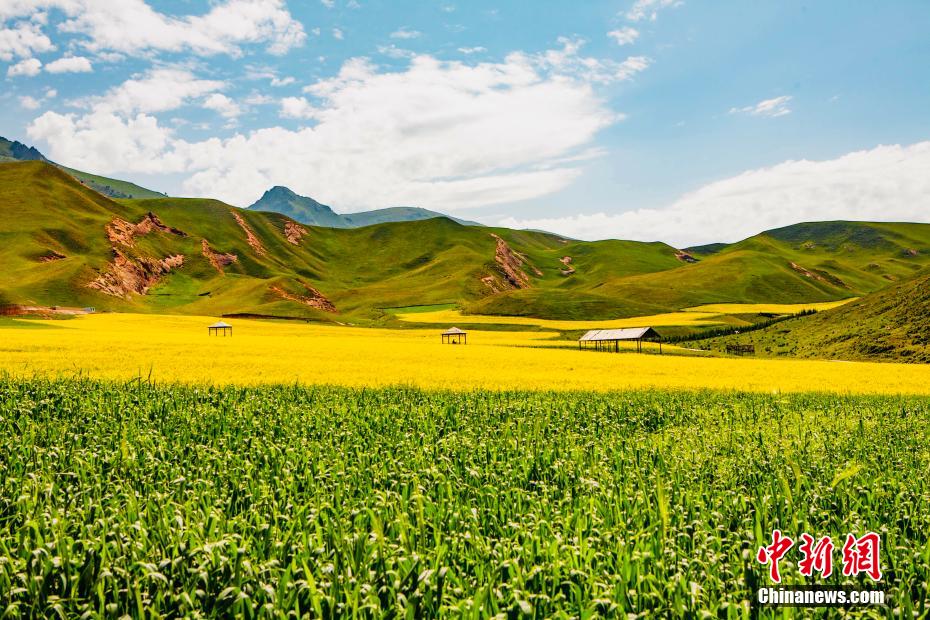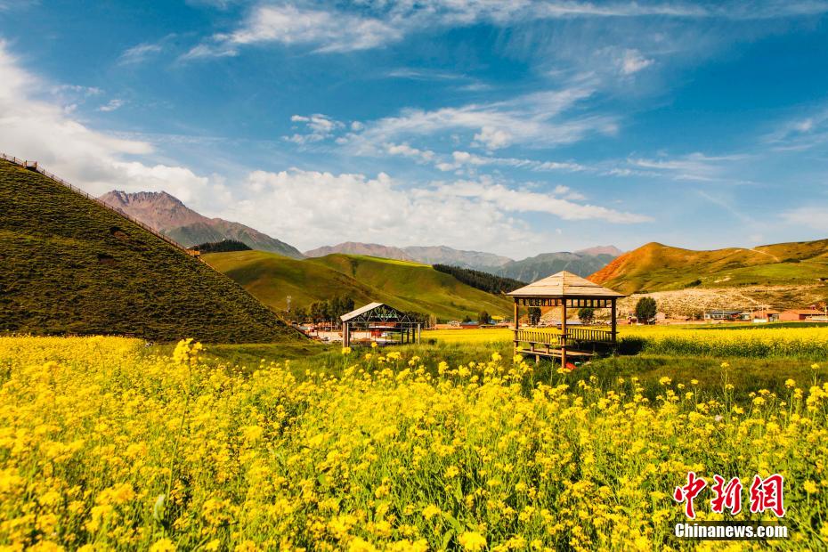 盛夏時(shí)節(jié),走進(jìn)青海海北藏族自治州祁連縣,親臨卓爾山讓人感覺到這里環(huán)境幽靜,空氣清新,風(fēng)景秀麗,數(shù)十條褶皺山脈縱橫捭闔,紅色的砂巖礫石放射出丹霞地貌特有的光采。平緩的坡地上,油菜花、青稞,牧草、鮮花、原始森林相互間雜,田野、村莊與大自然融為一體,在大地上描繪出一幅氣勢恢弘色彩斑斕的畫卷。 趙海梅 攝