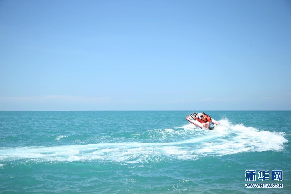 8月8日,游客在青海湖體驗水上娛樂項目。新華網(wǎng) 馬洪婷 攝