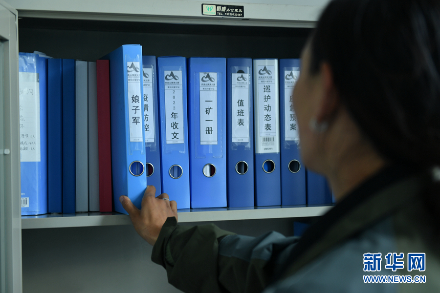 圖為代吉桑毛在管護站辦公室內(nèi)工作。新華網(wǎng) 卡婭梅朵 攝