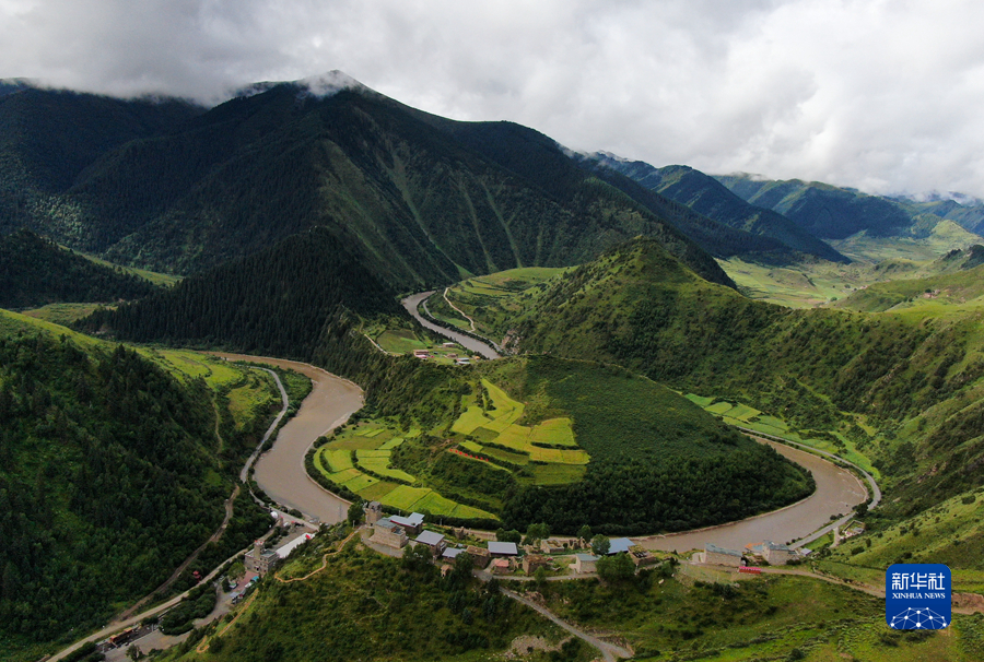 這是2021年8月7日在青海省果洛藏族自治州班瑪縣境內(nèi)拍攝的瑪可河(無人機(jī)照片)。 新華社記者 張龍 攝