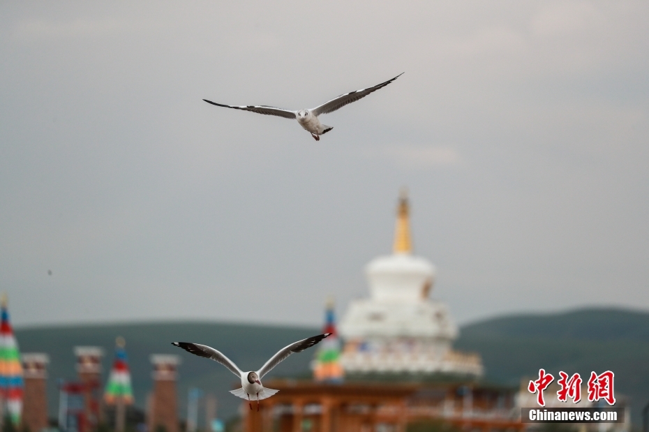 8月11日,青海省海北藏族自治州剛察縣,沙柳河國家濕地公園內(nèi)的水鳥自由飛翔。中新社記者 賈天勇 攝