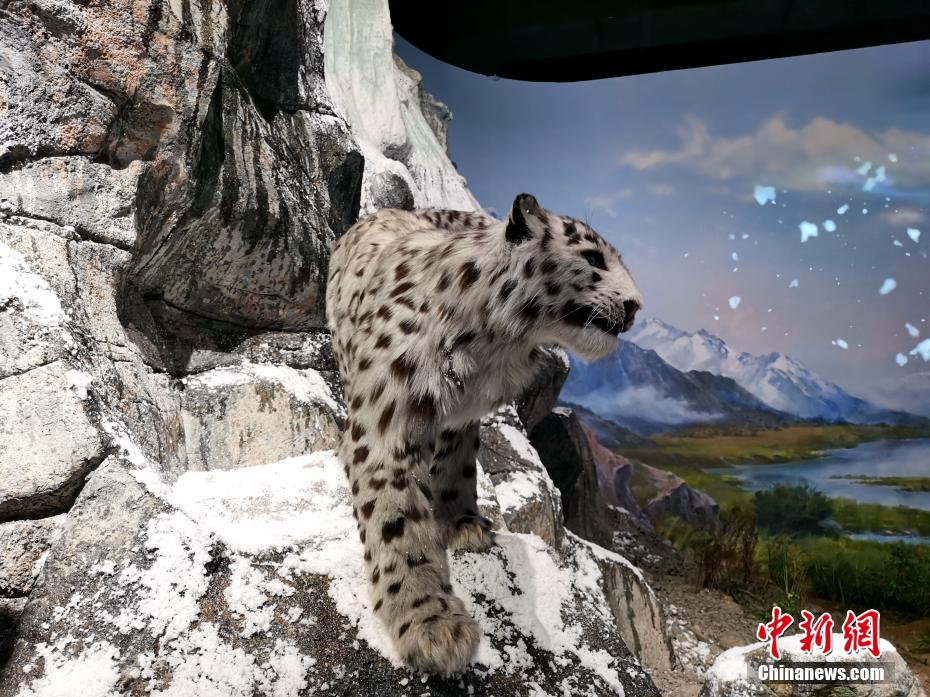 圖為“雪山之王”雪豹模型。 張?zhí)砀?攝