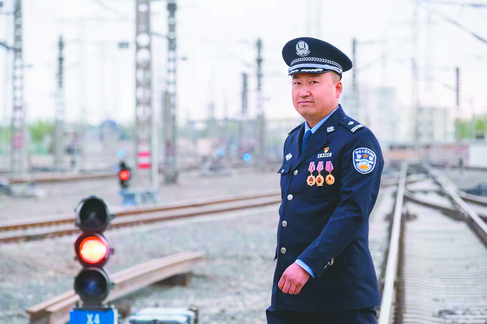 胸前的勛章是對鄭天海10年堅(jiān)守的最好回報(bào)。青藏鐵路公安局格爾木公安處提供