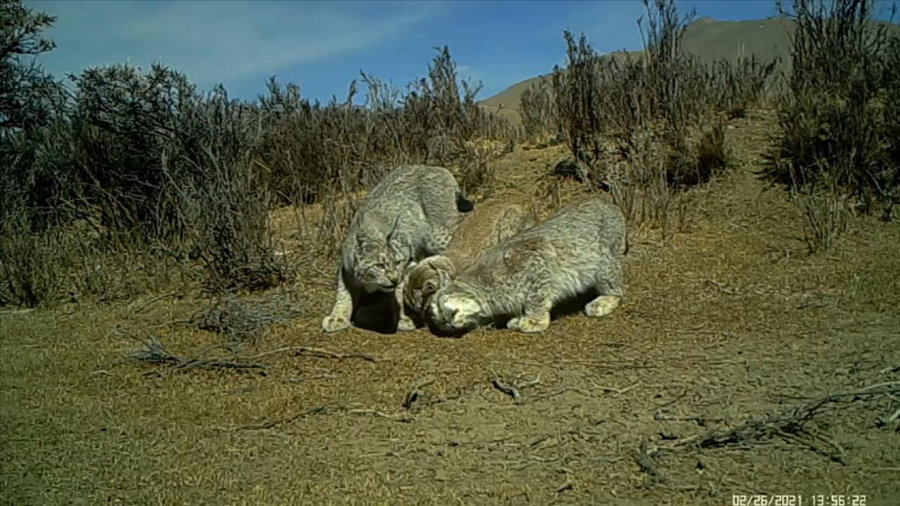 這是在祁連山國(guó)家公園青海片區(qū)拍攝到的三只猞猁。(圖片由祁連山國(guó)家公園青海省管理局提供)