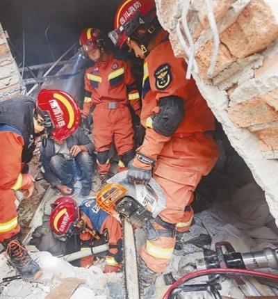 9月5日17時16分,海螺溝景區(qū)消防救援大隊對位于磨西鎮(zhèn)老街一酒店二樓的被困群眾展開營救。消防救援人員破拆加固建筑廢墟、安全評估現(xiàn)場環(huán)境,并對廢墟中的障礙物進行清理,經過緊張救援,被困群眾被成功救出。王明峰 劉國謙 攝影報道