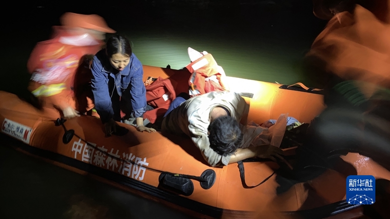 9月5日,在瀘定縣德妥鎮(zhèn)新華村,甘孜州森林消防支隊(duì)救援人員通過橡皮艇轉(zhuǎn)移受傷群眾。魏紅攝