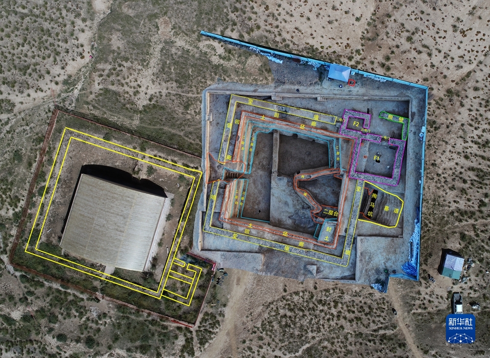 “2022年的工作重點是對2007QM1進行保護性清理發(fā)掘。”中國社會科學院考古研究所副研究員韓建華介紹,目前2007QM1清理發(fā)掘工作已經完成。據(jù)介紹,2007QM1位于2018血渭一號墓西側,緊挨2018血渭一號墓西塋墻。早年已發(fā)掘出塋墻、地上建筑、墓道、甬道、照墻和墓室,但未公布考古資料。為保護展示遺址,經重新發(fā)掘,確認該墓墓園形制和規(guī)模與2018血渭一號墓墓園相似。