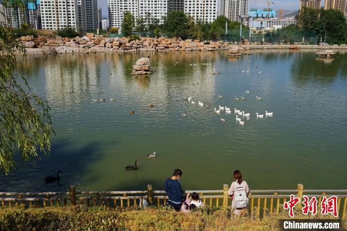 圖為游客在西寧野生動物園內(nèi)觀賞水鳥。馬銘言 攝