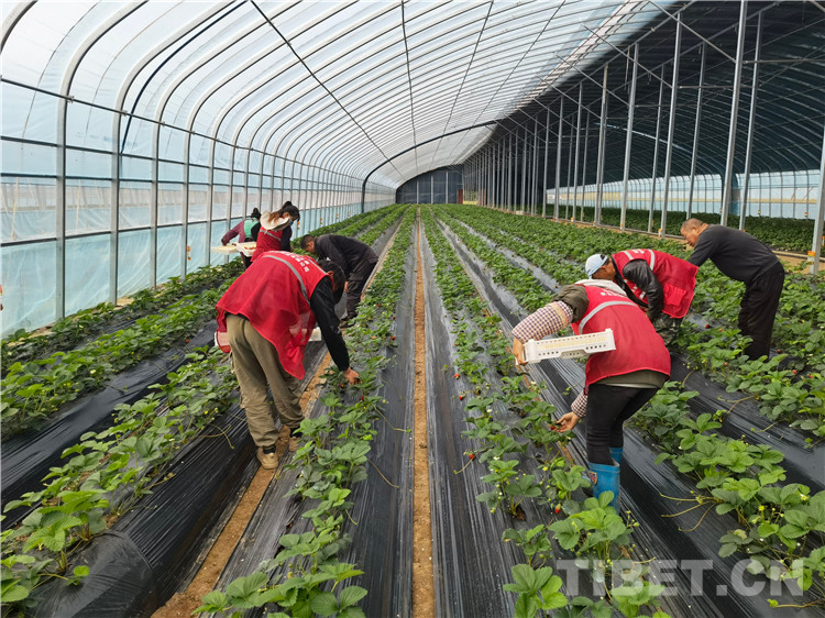 中國(guó)西藏網(wǎng)訊 時(shí)下,在四川省甘孜藏族自治州理塘縣濯桑現(xiàn)代農(nóng)業(yè)產(chǎn)業(yè)園區(qū),120畝草莓經(jīng)過(guò)100天的生長(zhǎng)后迎來(lái)了收獲季。走進(jìn)園區(qū)康呷村種植基地,大棚里的草莓長(zhǎng)勢(shì)喜人,當(dāng)?shù)?0多名農(nóng)牧民群眾正忙著梳葉、采摘,大棚里四處洋溢著豐收的喜悅。“以前我們除了種青稞、土豆之外,其余大多數(shù)時(shí)間都到處去打臨時(shí)工,收入也很不穩(wěn)定,一年到頭只能掙幾千元錢(qián)?!爆F(xiàn)年25歲的濯桑鄉(xiāng)漢戈村民格絨志瑪說(shuō)道。