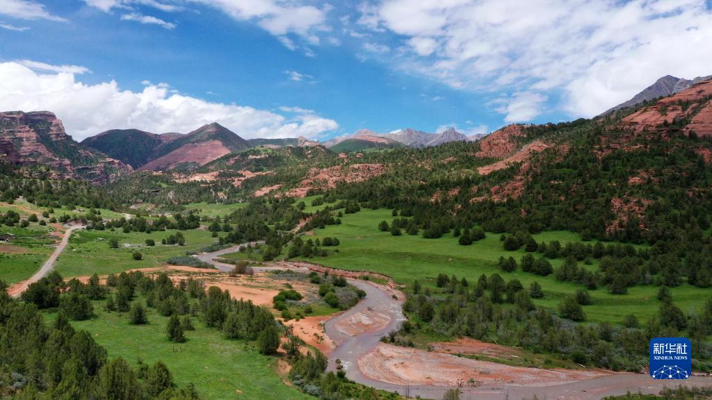 這是在青海省玉樹藏族自治州雜多縣境內(nèi)拍攝的昂賽大峽谷一角(6月29日攝,無人機照片)。新華社記者 張宏祥 攝