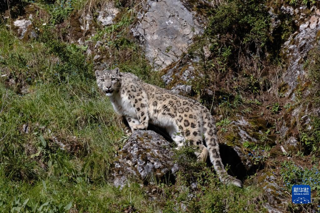 這是在青海省玉樹藏族自治州雜多縣境內(nèi)的昂賽大峽谷拍攝的雪豹(8月6日攝)。新華社發(fā)(姚牧陽 攝)