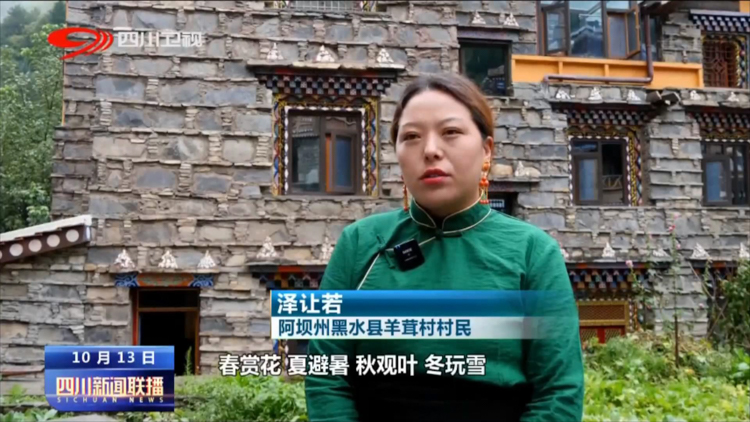 阿壩州黑水縣羊茸村村民 澤讓若:春賞花,夏避暑,秋觀葉,冬玩雪,越來(lái)越多的游客來(lái)到我們這兒,以前是不敢想的。