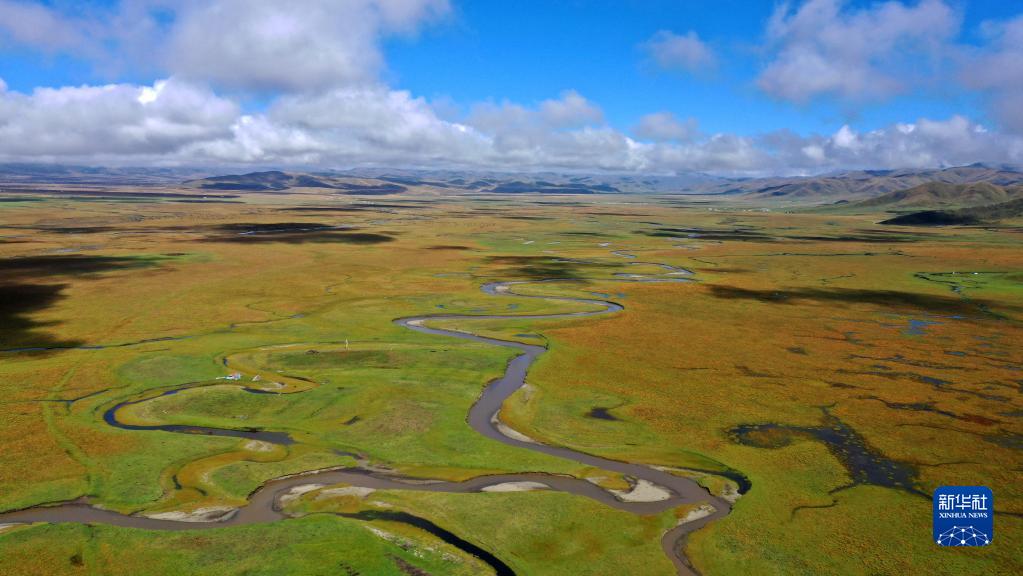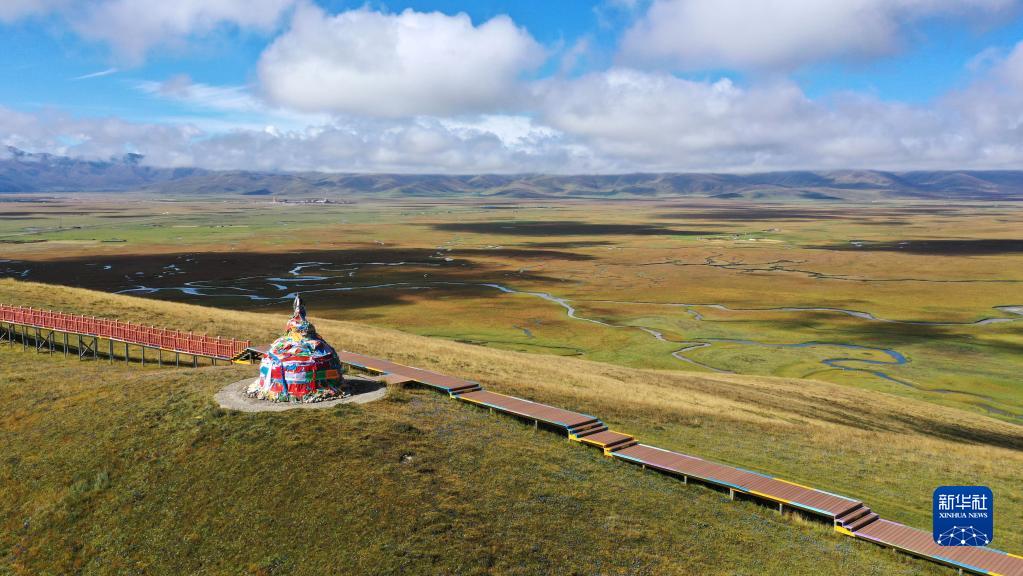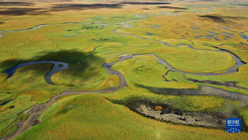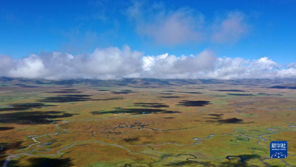 這是2022年9月21日拍攝的瑪曲縣阿萬倉濕地(無人機照片)。新華社記者 陳斌 攝