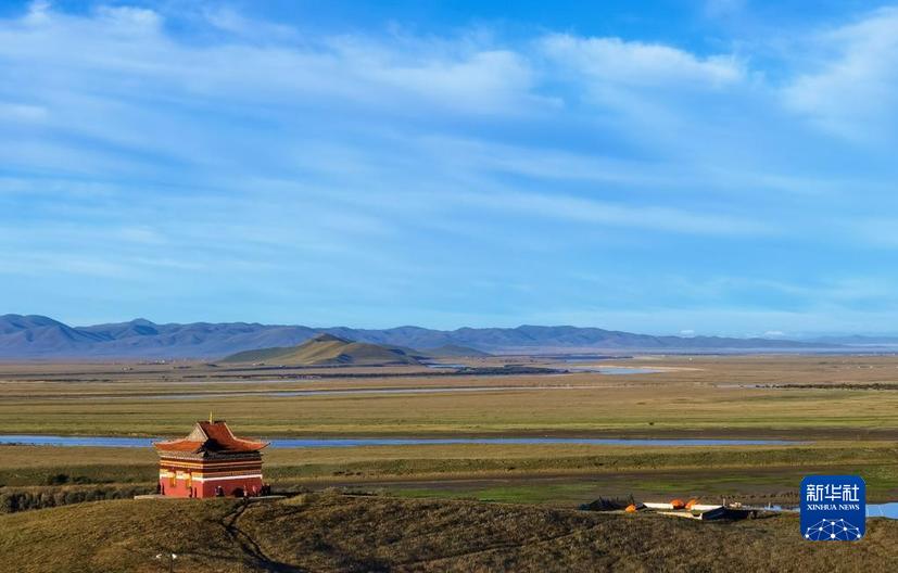 這是2022年10月18日在四川省阿壩藏族羌族自治州若爾蓋縣拍攝的花湖濕地(無人機(jī)照片)。新華社記者 王曦 攝