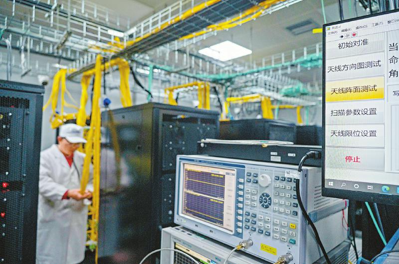 2022年10月28日 科研人員在調(diào)試圓環(huán)陣太陽射電成像望遠鏡系統(tǒng)設(shè)備。