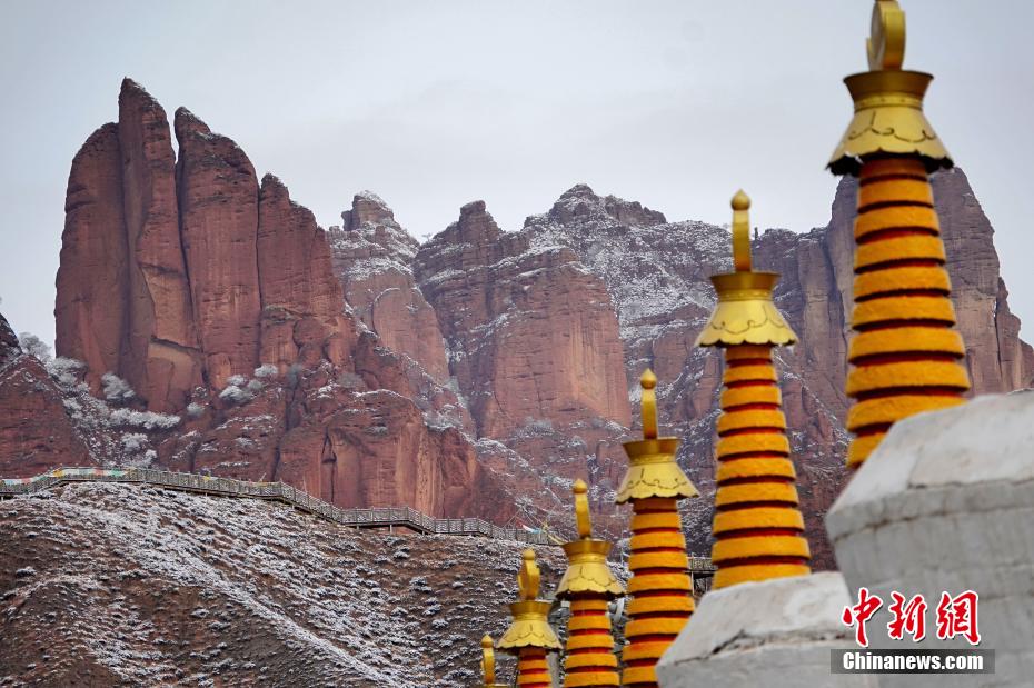青海坎布拉:堡狀、柱狀丹霞披銀裝