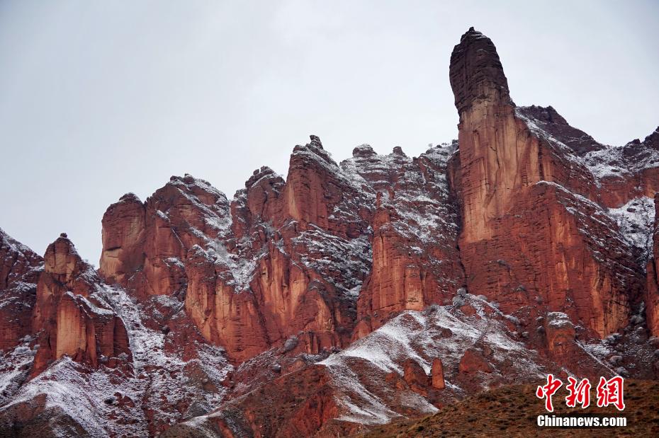 圖為坎布拉堡狀丹霞地貌披上銀裝。 劉德賢 攝