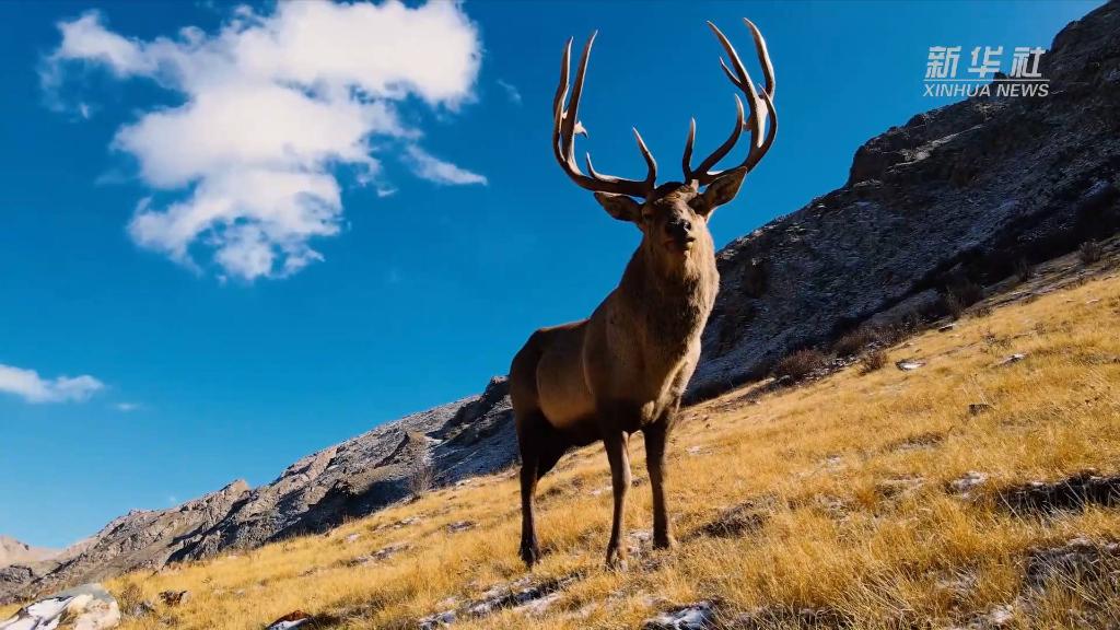 青海海西:上百只白唇鹿現(xiàn)身柏樹山