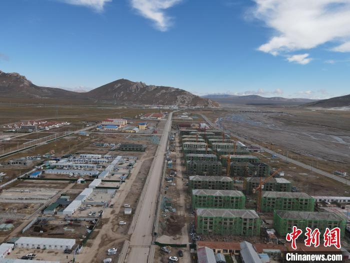 圖為無人機航拍災后重建農牧民D級住房項目?,敹嗫h委宣傳部 供圖