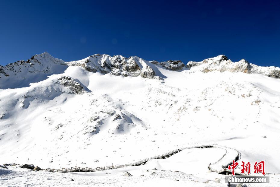 隨著冬季的到來,達古冰川悄然換上冬裝,從海拔4860米的山頂觀景平臺到山下金猴海,皚皚白雪將原本多彩的世界暈染成“童話世界”,雪山與湖泊相映成趣,形成了不同海拔區(qū)域不同景色的特色景觀。