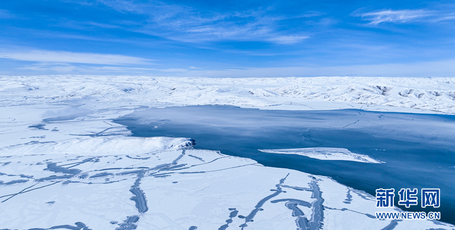 封凍的湖面如同破碎的“玉帶”,形成獨(dú)特的景觀。新華網(wǎng)發(fā)(宋忠勇 攝)