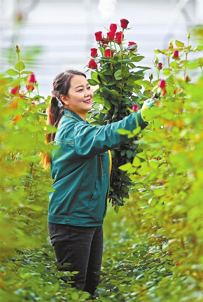 時值寒冬,與新康村一街之隔的蘭州新區(qū)現(xiàn)代農(nóng)業(yè)雙創(chuàng)基地的花卉溫室里溫暖如春,韓紅明正麻利地修剪著玫瑰花,“一個月將近4000元的工資,又在家門口上班,搬來之前我做夢都沒想到過。”韓紅明在老家平時只會做做農(nóng)活,搬遷后很擔(dān)心自己的就業(yè)問題。在新康村黨總支的幫助下,韓紅明搬來不久就被介紹到現(xiàn)代農(nóng)業(yè)雙創(chuàng)基地溫室內(nèi)工作,既能掙錢又能照顧老人和孩子。