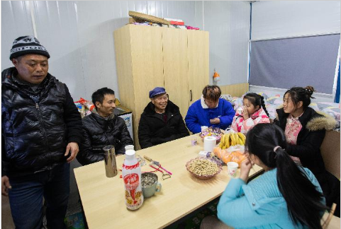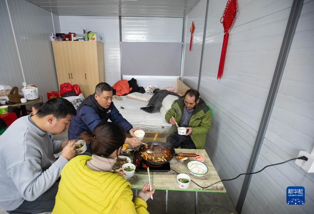 1月26日,瀘定縣磨西鎮(zhèn)磨子溝村李華軍一家在“9·5”瀘定地震磨西鎮(zhèn)安置點(diǎn)吃午飯。新華社記者江宏景攝