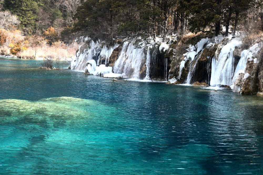 隆冬時節(jié),在世界自然遺產(chǎn)地九寨溝,皚皚白雪為她披上一身銀裝,淡藍(lán)色的冰瀑也增添了幾分靜謐。冬日陽光明媚,川西高原上湛藍(lán)的高山湖泊與白雪交相輝映,讓被譽(yù)為“童話世界”的九寨溝更加迷人。