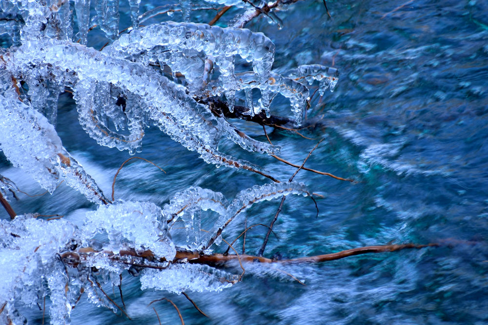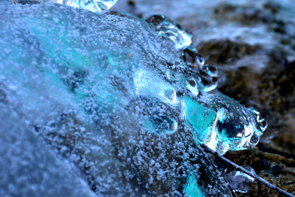 “潔凈的空氣和水是形成藍(lán)冰的基礎(chǔ)條件,隨著氣溫持續(xù)降低,冰層厚度越厚,藍(lán)冰也會格外明顯?!毙ぞS陽說。