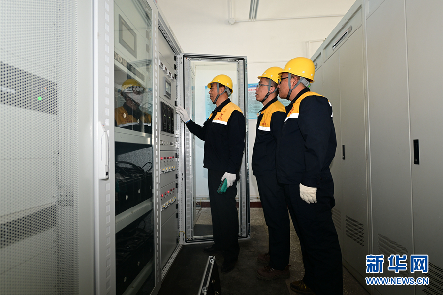 2月5日,在青藏集團(tuán)有限公司西寧供電段格爾木檢修車(chē)間,王永忠與同事在巡檢保護(hù)裝置柜。新華社記者 張龍 攝