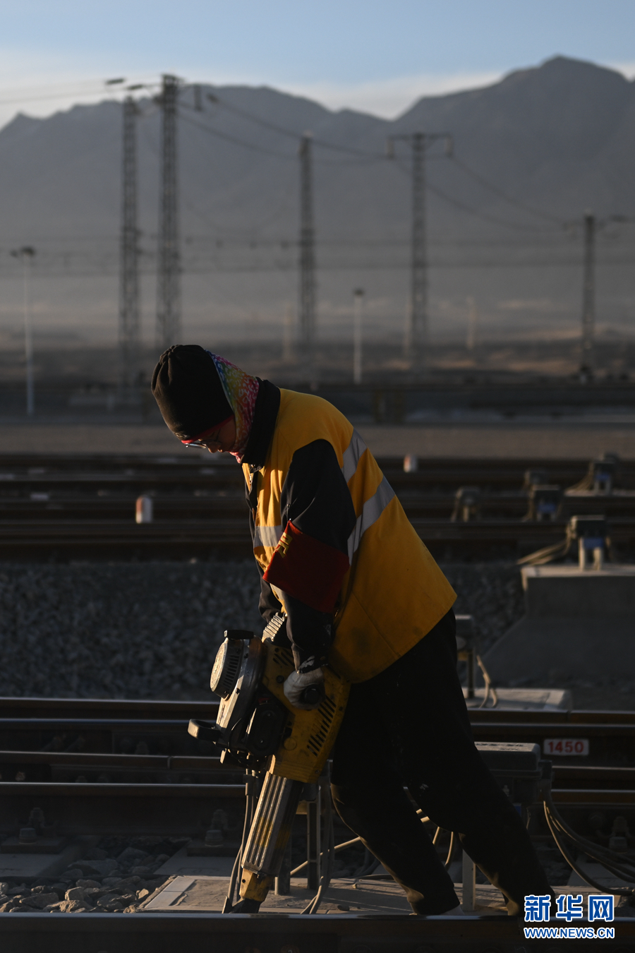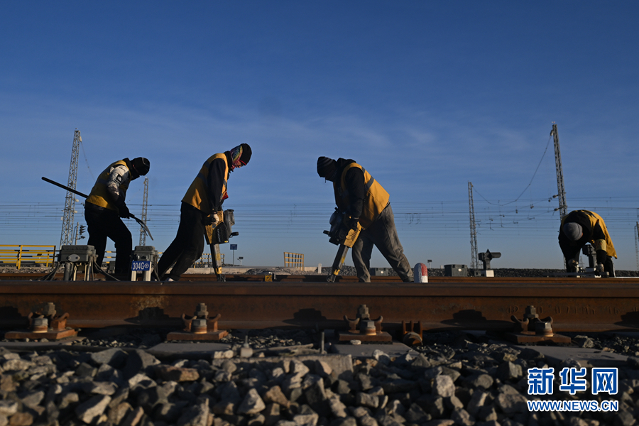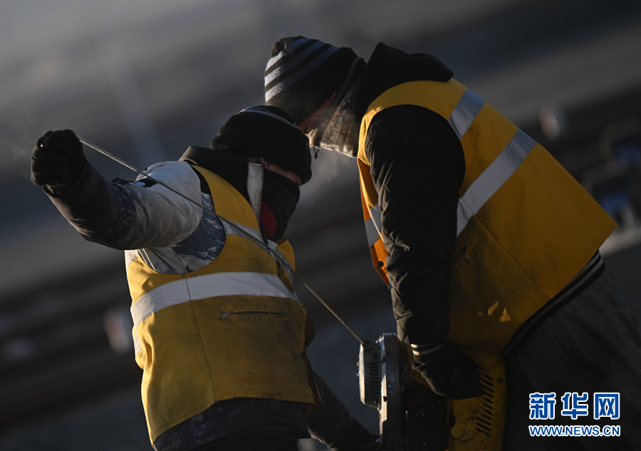 2月7日,中國鐵路青藏集團有限公司格爾木工務段格南線路工區(qū)的職工在格爾木南站施工。新華社記者 張龍 攝