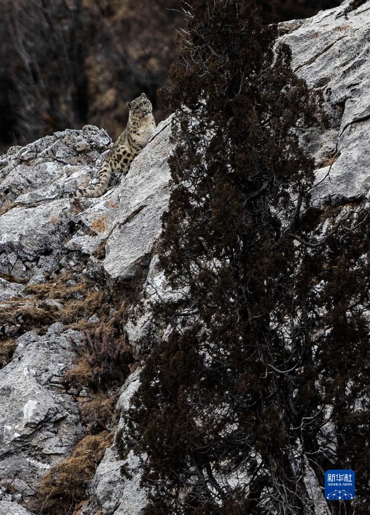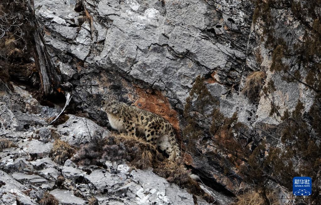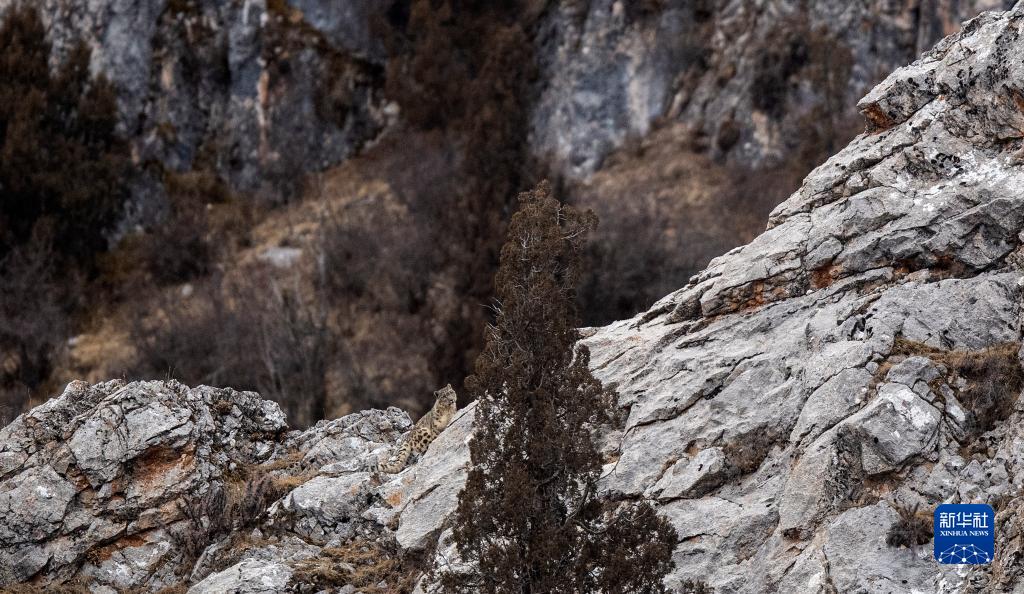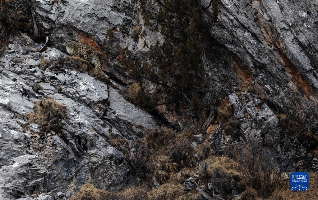 2月21日,在青海省玉樹(shù)藏族自治州雜多縣昂賽鄉(xiāng)境內(nèi)的昂賽大峽谷內(nèi),一只雪豹正在活動(dòng)。新華社記者 張宏祥 攝