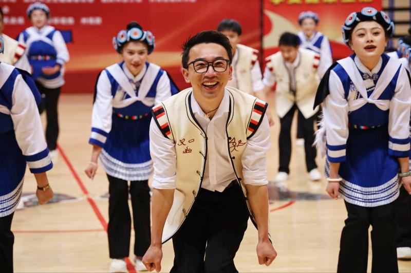 來自州級(jí)各委辦局、各企事業(yè)單位、各人民團(tuán)體的16支代表隊(duì)參賽表演。 伴隨著輕松明快的音樂,《舞動(dòng)高原》《鐵肩道義·踢踏前行》《桃香陶韻》《律動(dòng)青春·點(diǎn)贊新時(shí)代》《斗嘎嘞》《花木“藍(lán)”焰》等節(jié)目逐一亮相,明艷的民族服飾,熱情的動(dòng)作展演,贏得現(xiàn)場(chǎng)掌聲不斷。
